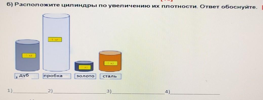 1) Пробка. 2) дуб. 3) сталь. 4) золото.