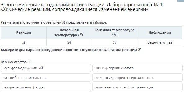 Экзотермические и эндотермические реакции. Лабораторный опыт № 4 «Химические реакции, сопровождающиеся изменением энергии»