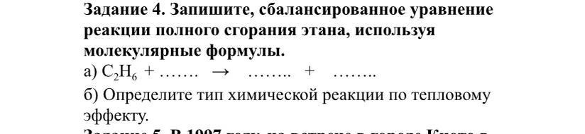 a) 2C2H6 + 7O2 → 4CO2 + 6H2O