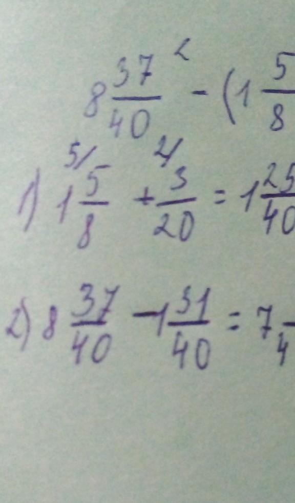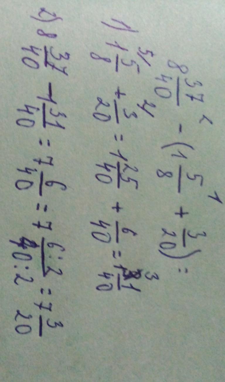 8 37/40 -1 31/40 = 7 6/40 = 7 1/5
