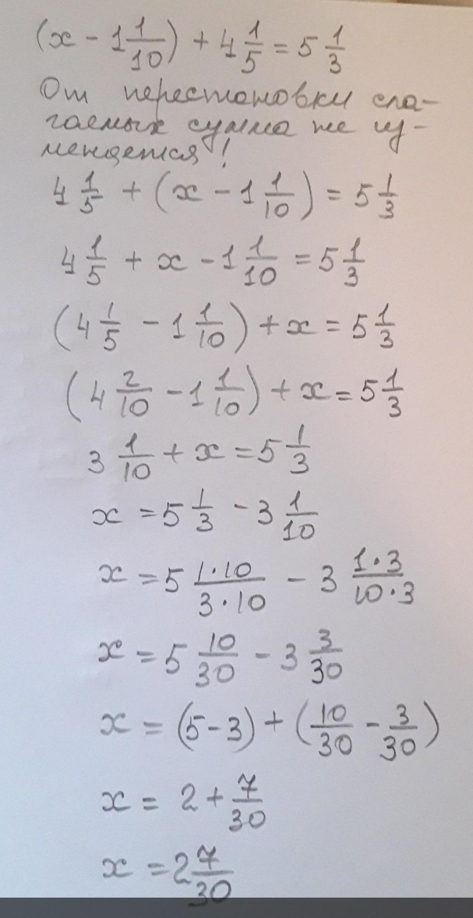 (Х-1 3/30)=4 6/30=5 10/30