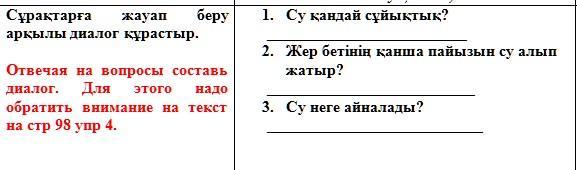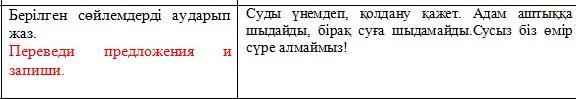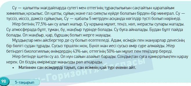 Жауап(ответ): Су - түссіз, иіссіз, дәмсіз сұйықтық.
