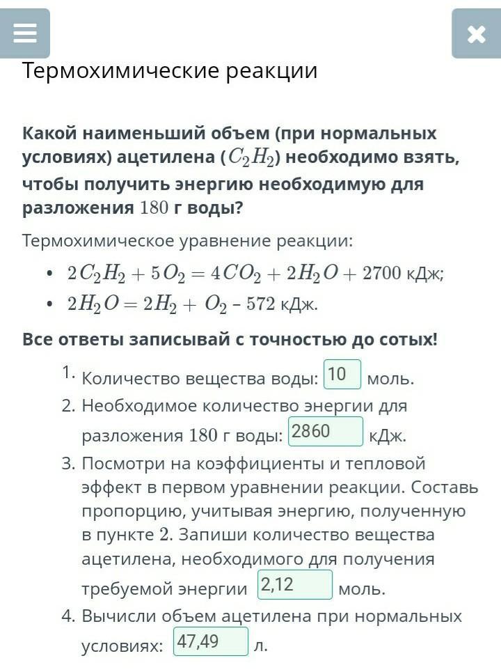 4.Вычисли объем ацетилена при нормальных условиях: 47,49л.