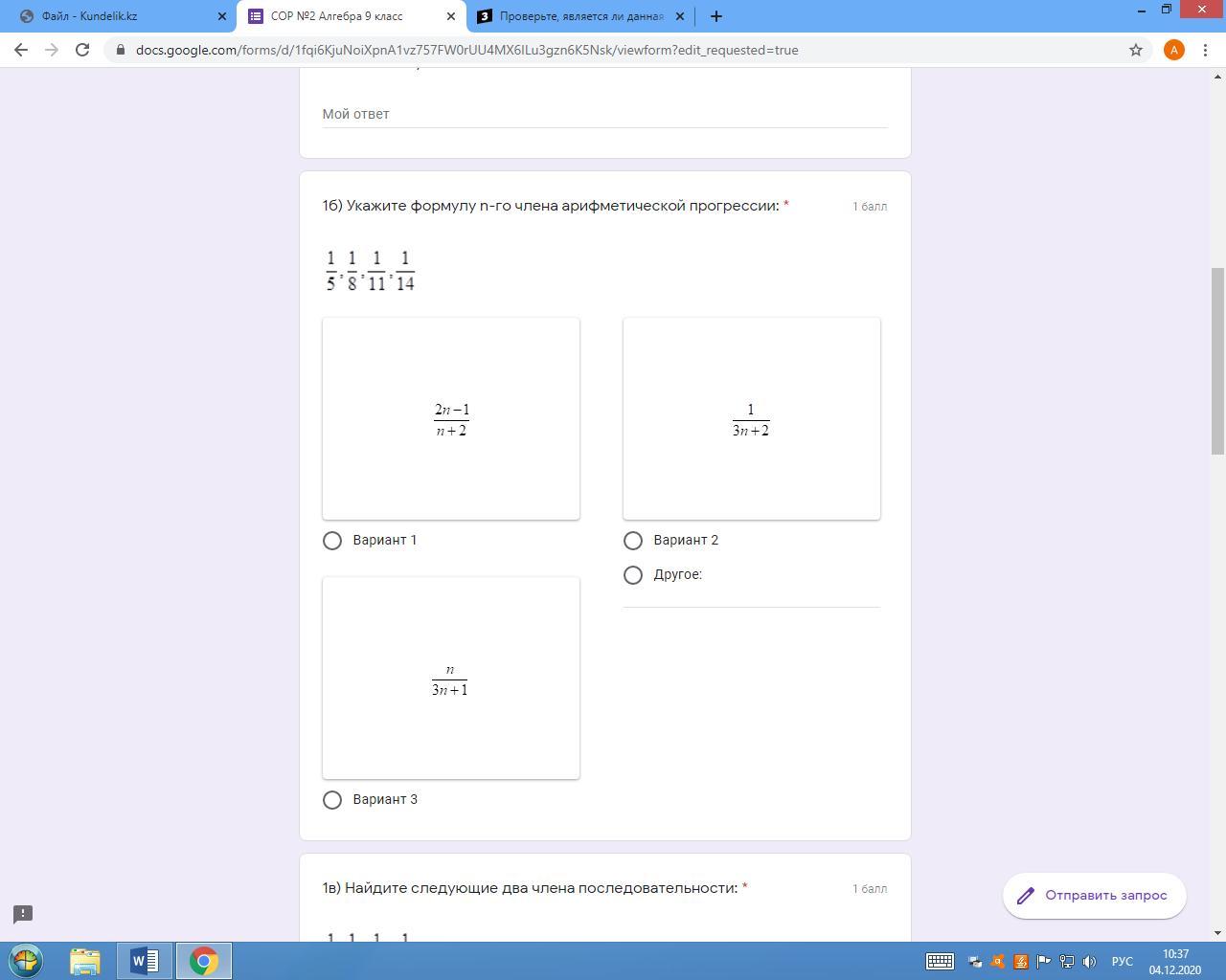 Укажите формулу n-го члена арифметической прогрессии: 1/5, 1/8, 1/11, 1/14