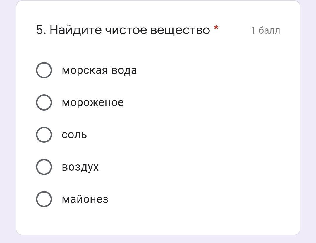 Поваренная соль является чистым веществом. Если же её растворить в воде, образуется раствор, который является смесью двух веществ — воды и поваренной соли. Чистое вещество состоит из частиц одного вида. Например, вода состоит только из молекул воды.
