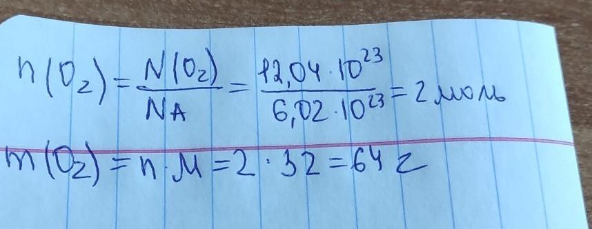 Определите количество вещества и массу кислорода содержащий 12,04×10²³ молекул