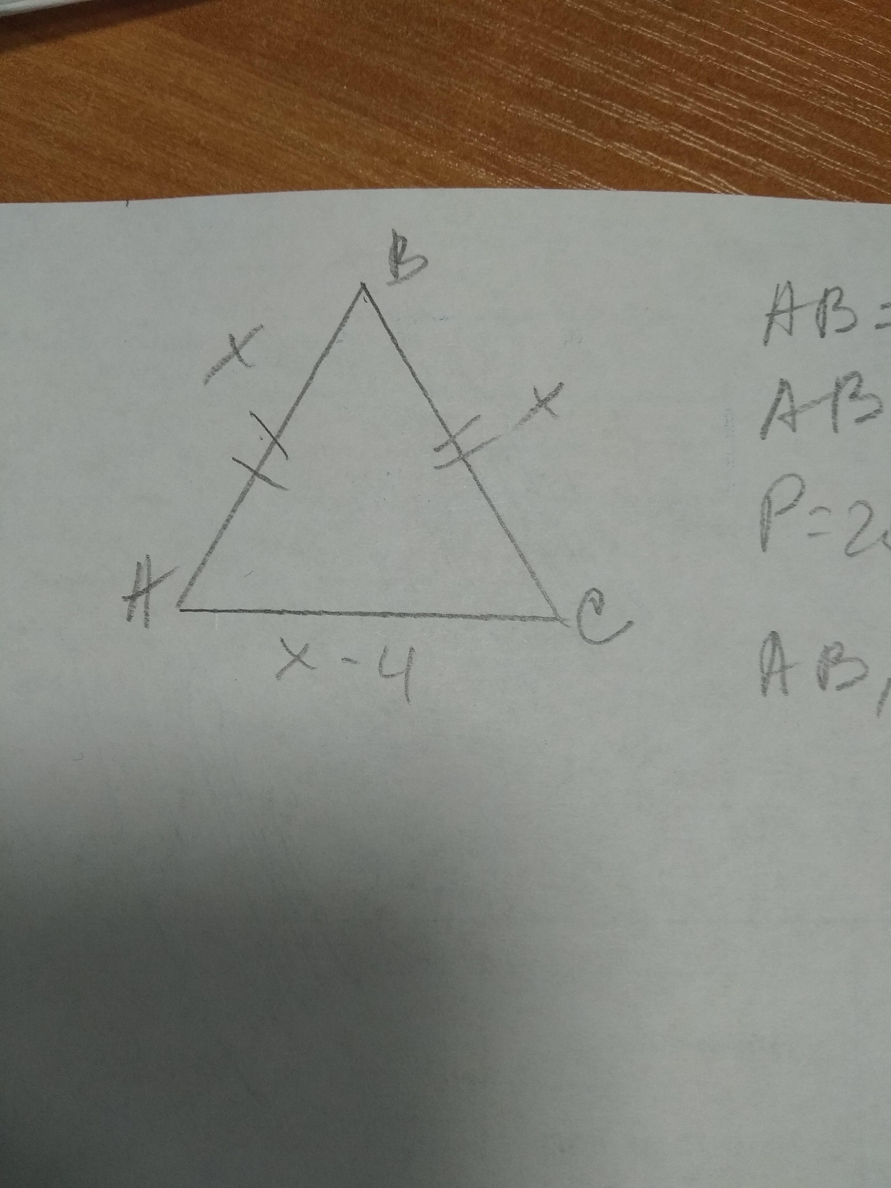 Пусть АВ=х, тогда АВ=ВС=х и х-АС=4дм АС=х-4дм