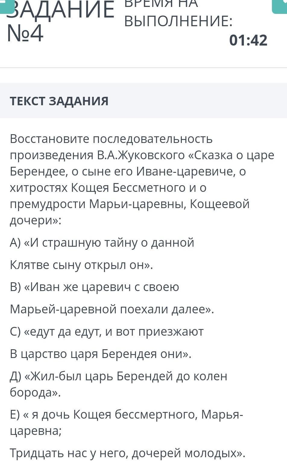 Восстанови последовательность Сказка о царе берендее ответ запишите Буква-цифра