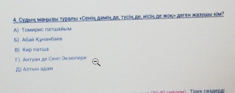 4 Судың маңызы туралы Сенің демің де түсін де, иісін де жок деген жазушы кім?