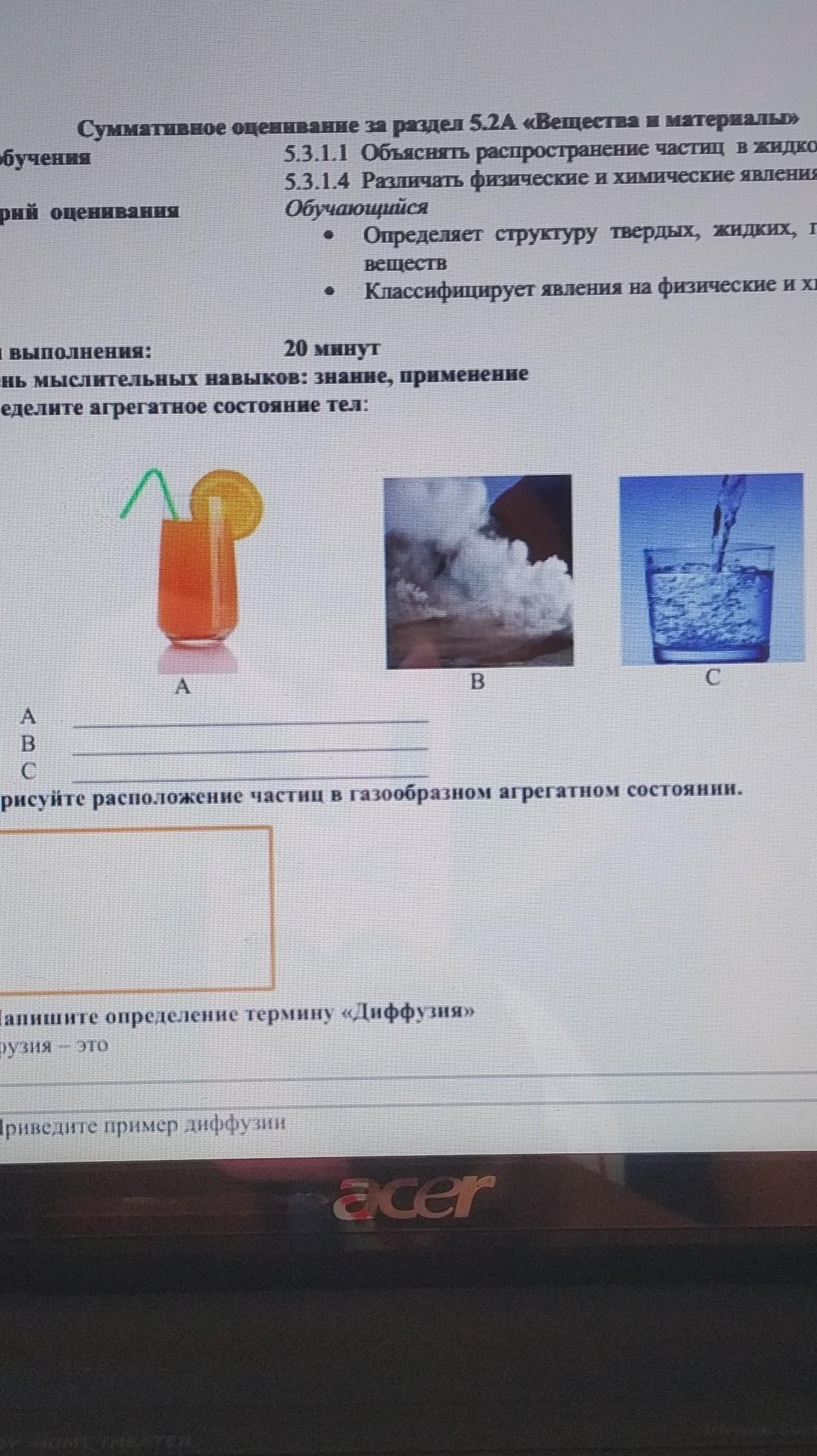 1)Определите агрегатное состояние тел: