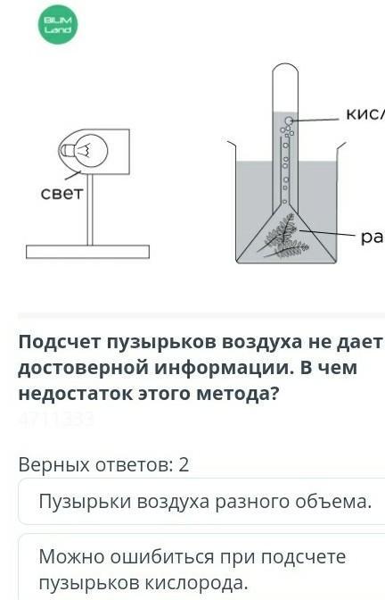Пузырьки воздуха разного объёма и Можно ошибиться при под счёте пузырьков кислорода( у кого лимит,и это правильно чем ответ)