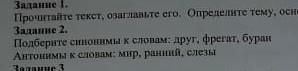 1. где текст?2.друг-товарищ, фрегат-судно, буран-метель3. мир-война,раний- поздний,слезы-улыбка