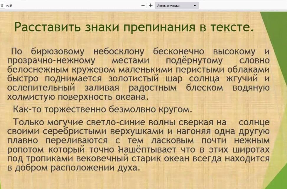 По бирюзовому склону, бесконечно высокому и прозрачно - нежному, местами подёрнутому, словно белоснежным кружевом, маленькими перистыми облаками, быстро поднимается золотистый шар солнца, жгучий и ослепительный, заливая радостным блеском водяную холмистую поверхность океана.