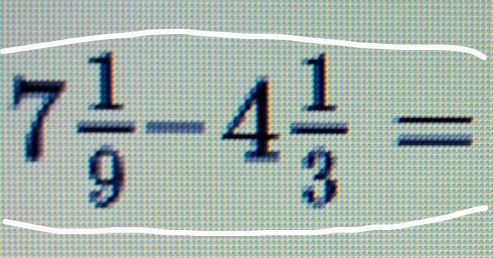 Найди разность смешанных чисел. 7целых 1/9 - 4целых 1/3 равно.