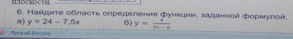 Найдите область определения функции заданной формулой а) у=24-7,5х б) у=4/3х-6
