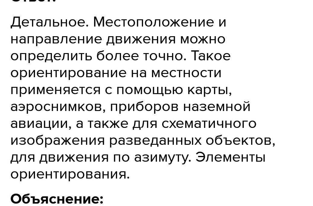 Детальное Местоположение и направление движенияможно определить более точно такое ориентирование на местности применяется с помощью карты аэроснимков приборов наземная авиация а также для схематичного изображения разведданных объектов, для движения по азимуту