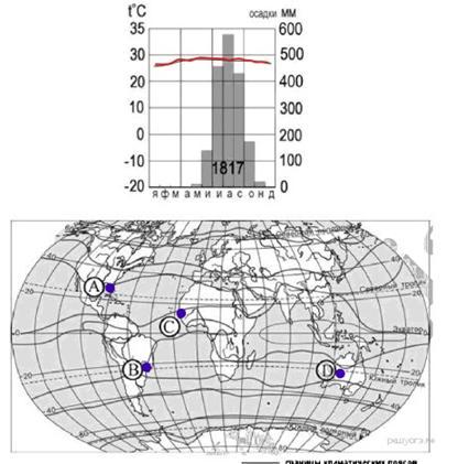 1 Какому пункту на карте соответствует климатограмма?