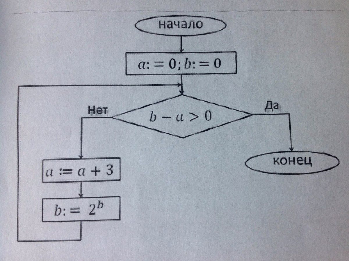 Определите значение переменной b после выполнения следующего фрагмента алгоритма, представленного в виде блок-схемы. В ответ напишите только число.