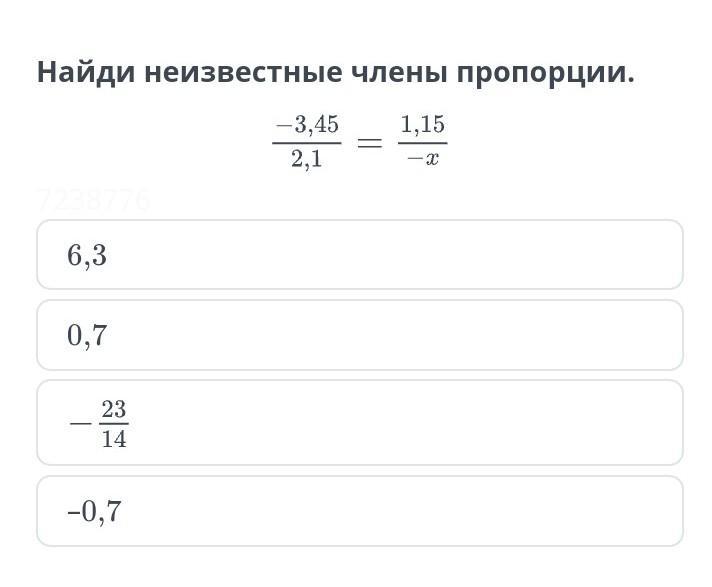 найди неизвестные члены пропорции. -3,45/2,1=1,15/-х