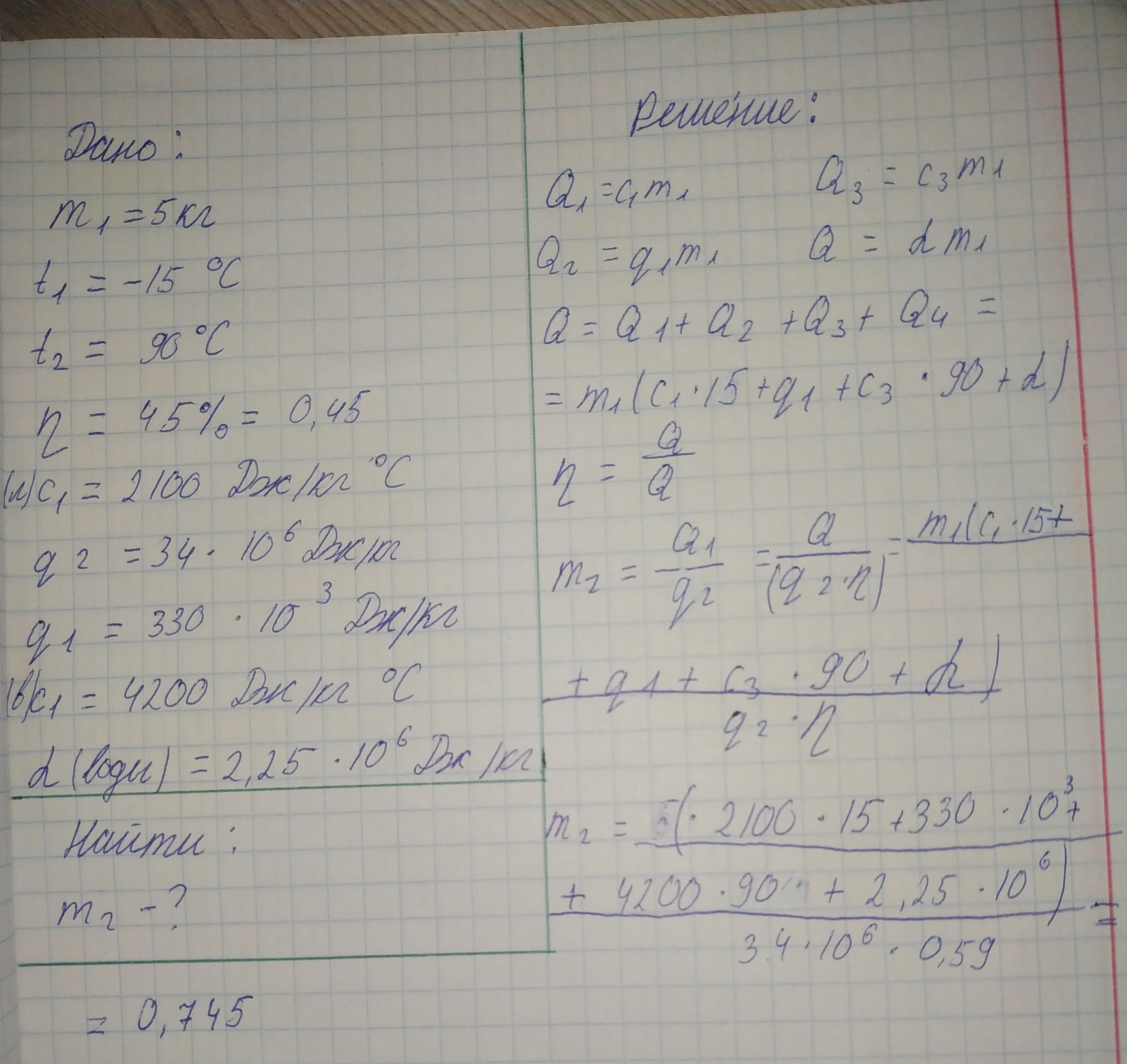 Сколько бензина необходимо сжечь чтобы превратить 5 кг льда взятого при -15 ̊С в воду при 90 ̊С? КПД нагревательной установки 45%.