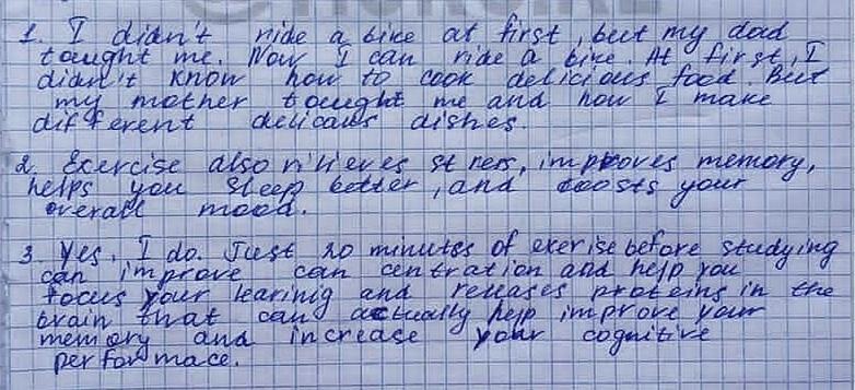 3) Do you think that exercise helps you study or solve problems more easily? Explain.