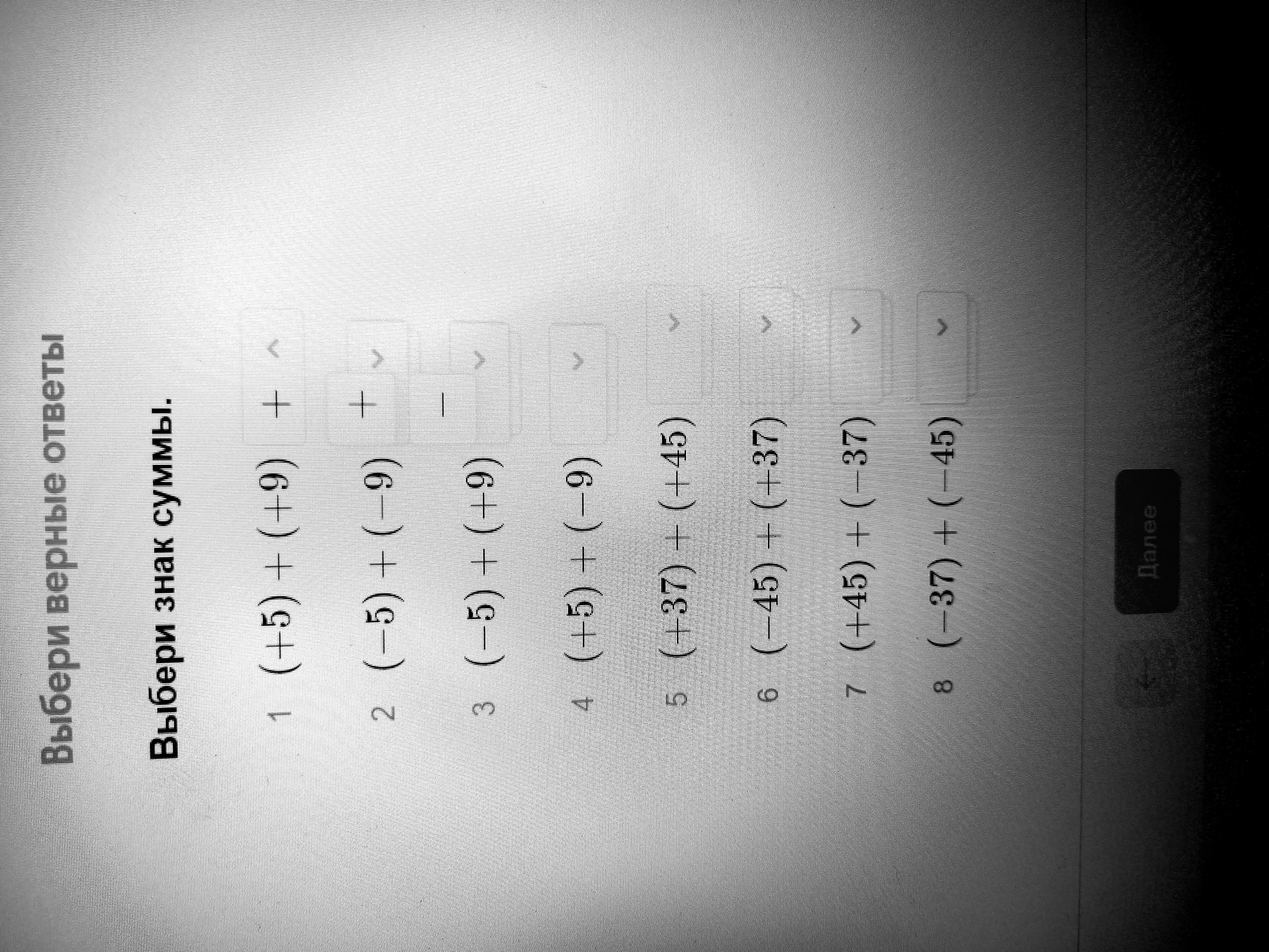 "Выбрать знак суммы" означает указать, какой знак будет у результата примера (ПЛЮС или МИНУС).