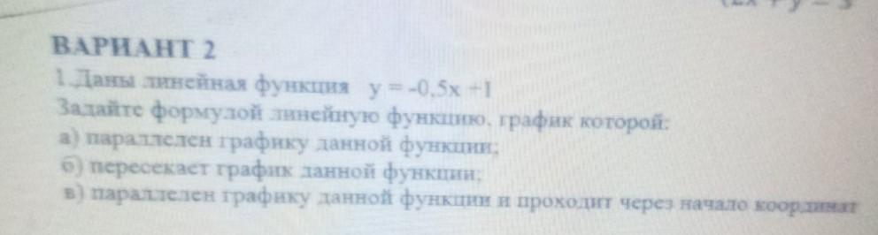даны длины линейной функция y=-0,5x+1 плюс один Задайте формулой линейную функцию график которой а параллельны график данной функции бета пересекаются график данной функции в параллельной график данной функции и проходит через начало координат