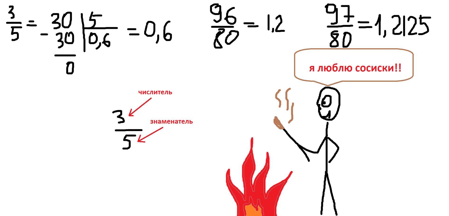 Пошаговое объяснение: что бы обыкновенную дробь преобразовать в десятичную надо числитель поделить на знаменатель. (3/5 3 это числитель, 5 знаменатель.) ↓↓