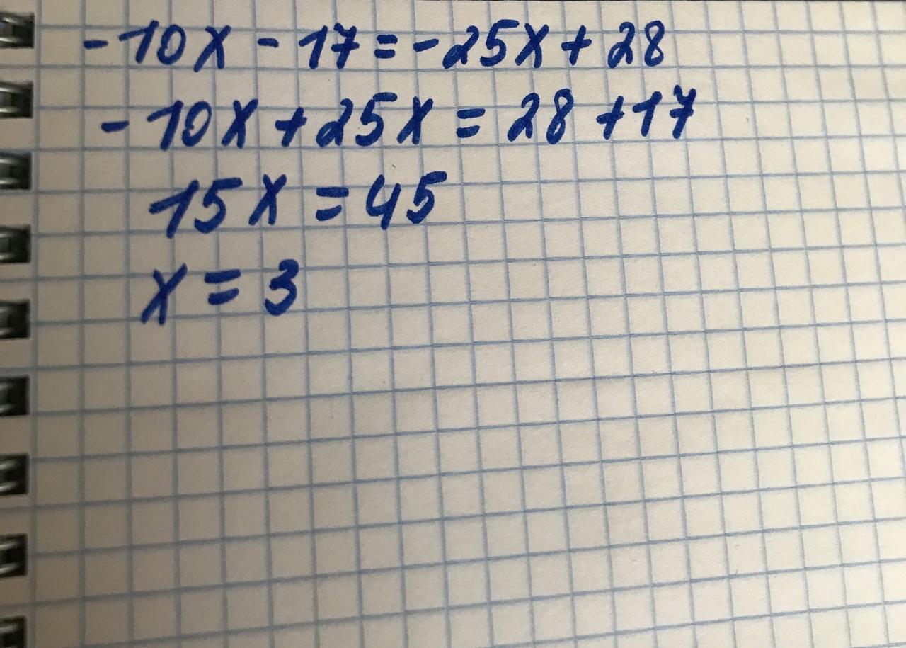 -10х+25х=17+28