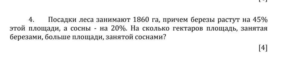 837-372=465 га площадь занятая берёза больше площади занятой соснами