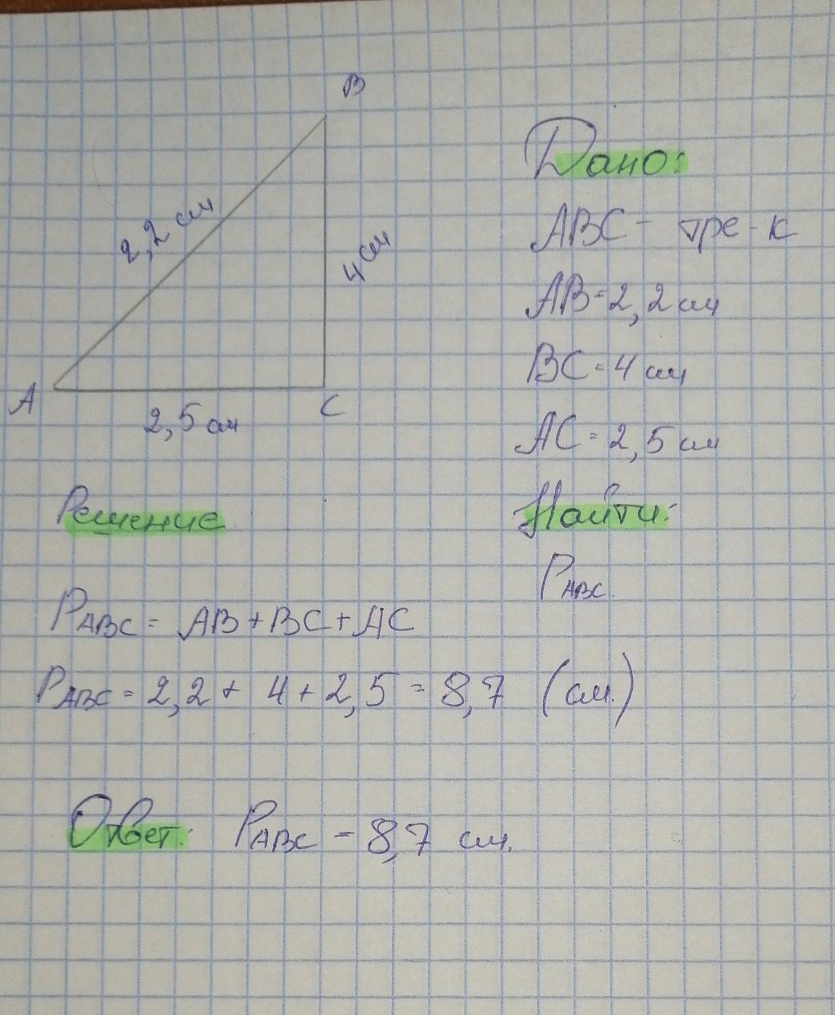 1.) В ∆ ABC AB = 2,2 см , BC = 4 см , CA = 2,5 см ,