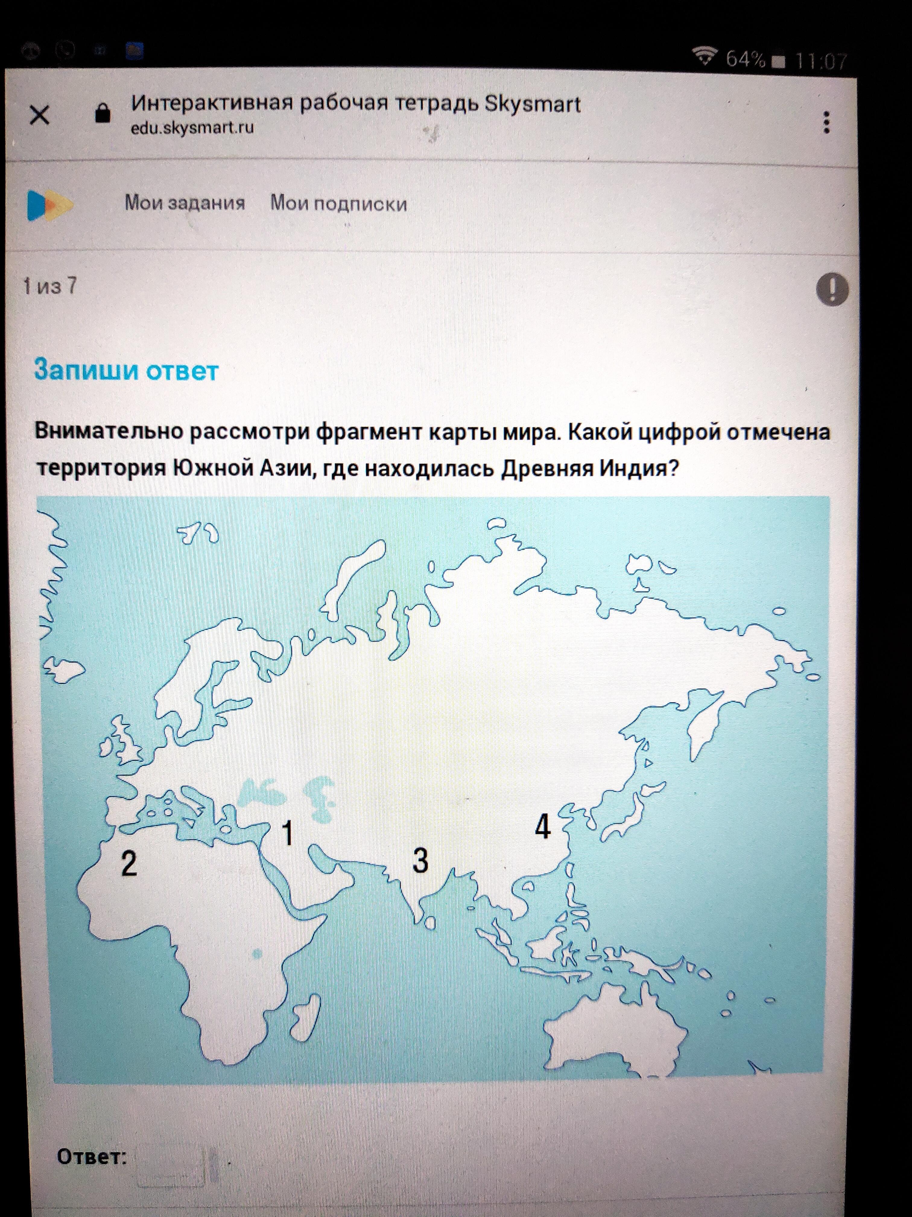 Внимательно Рассмотри фрагмент карты мира Какой цифрой отмечено территория Южной Азии, Где находилась древняя Индия?