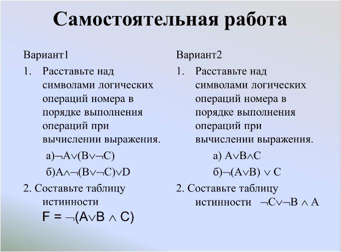 3 ¬ (b∨¬с)(отрицание выражения в скобках)