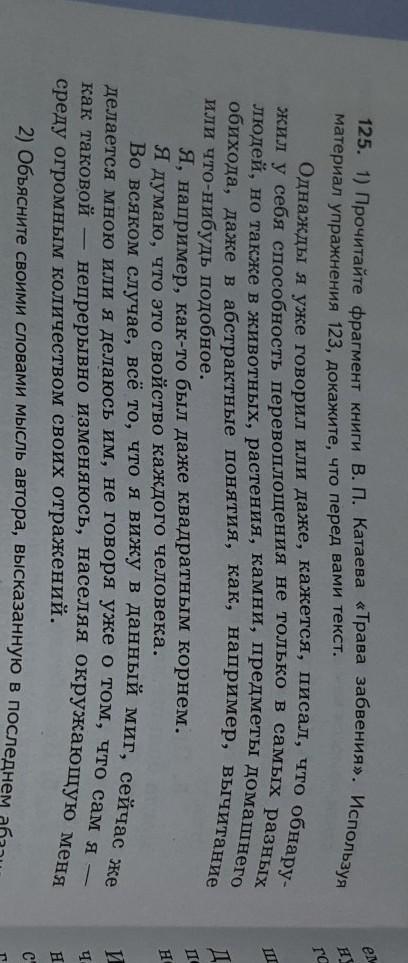 Прочитайте фрагмент книги Катаева Трава забвения. Используя материалы упражнение 123, докажите что перед вами текст.