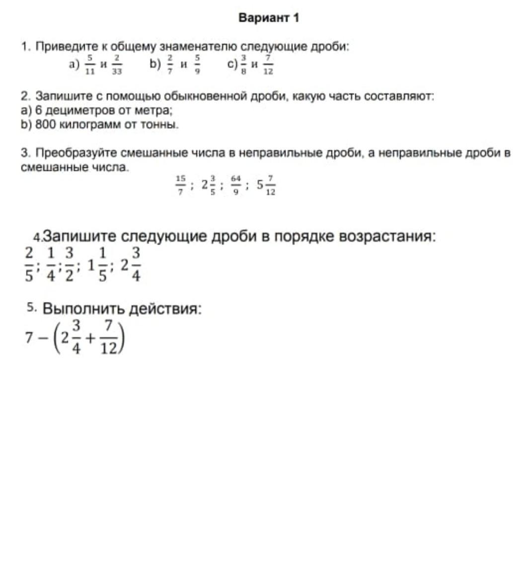 4. Ответ:1/4;2/5;1 1/5; 3/2;2 3/4