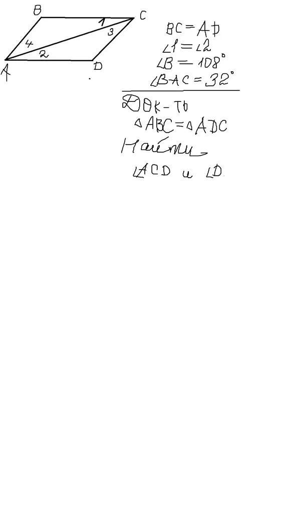 Угол D=108°,a угол ACD=148°