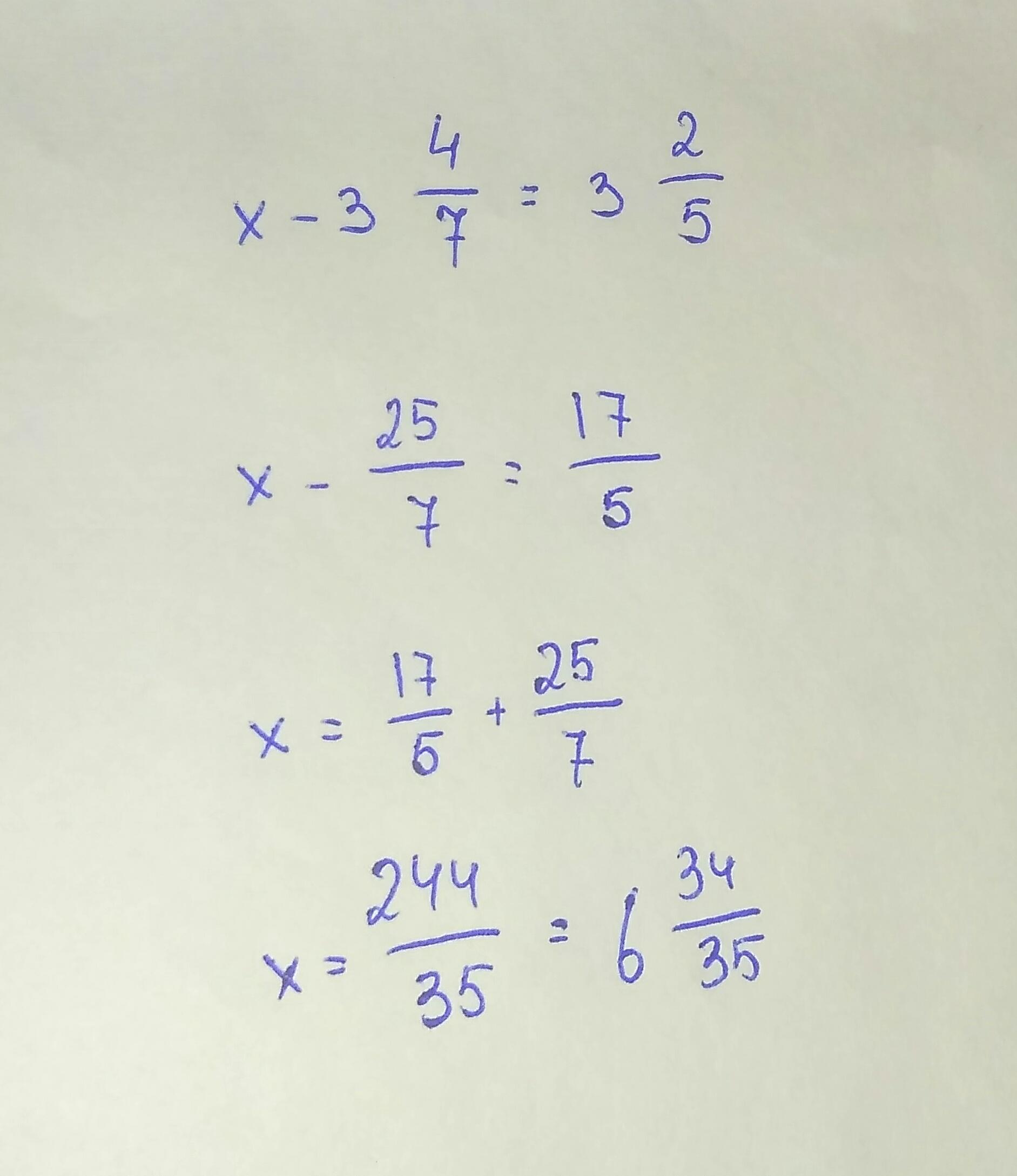 Решение уровнение X-3 4/7 = 3 2/5 верных ответов 1 :
