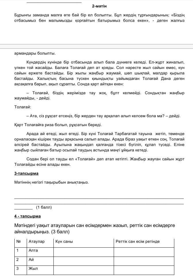 толағай тауы или толағай батыр, батырлық туралы мәтін крч