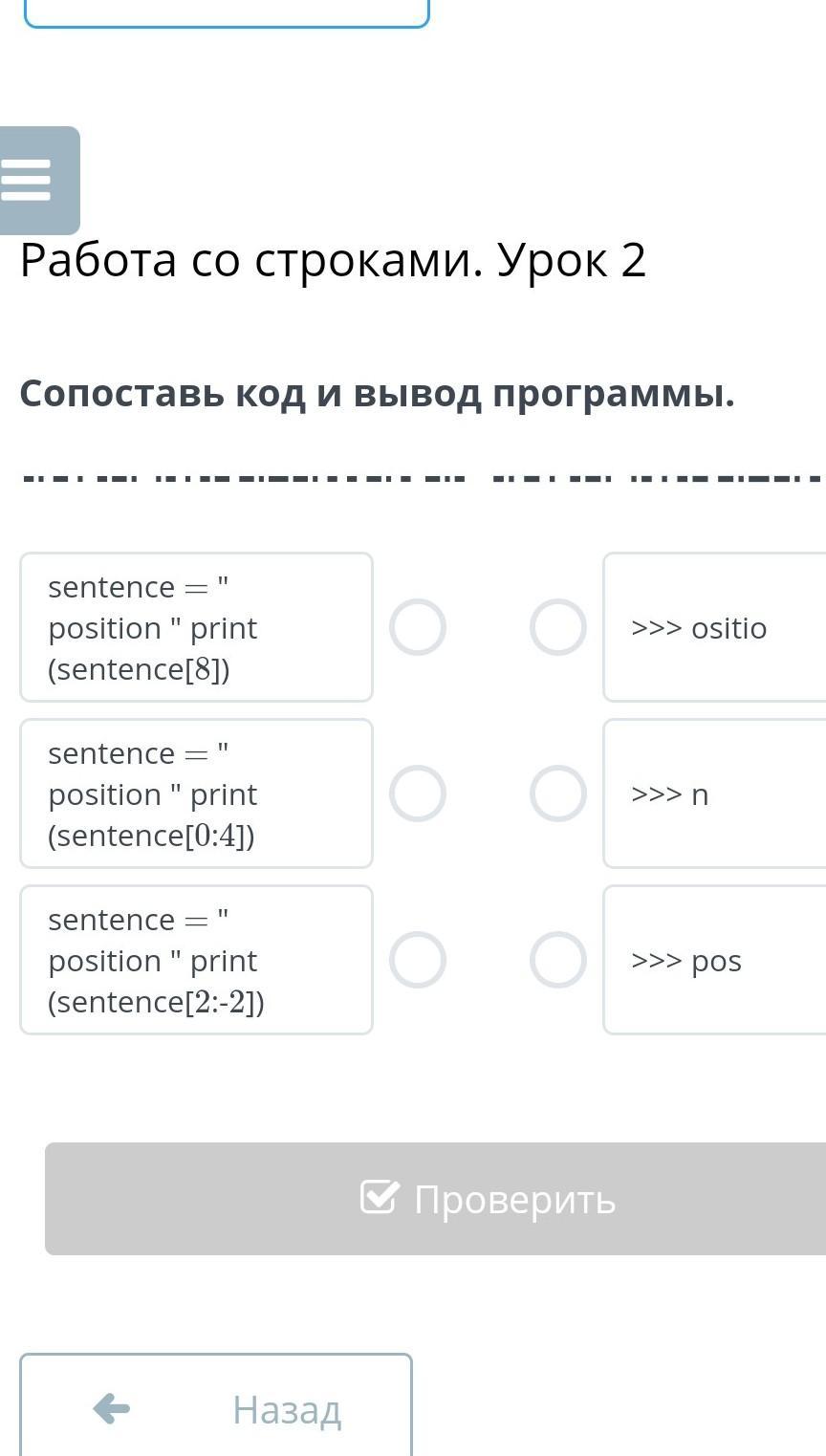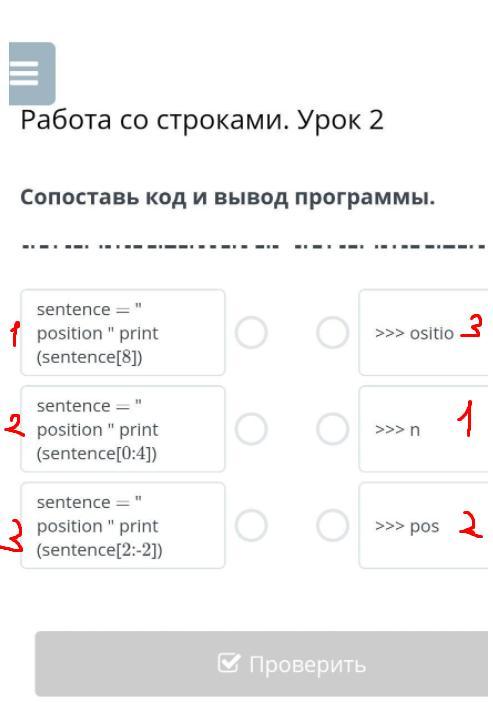 Т.к 3 выражений -> sentence = "position" print(sentence[2:-2]) выведет не "ositio", a "siti"