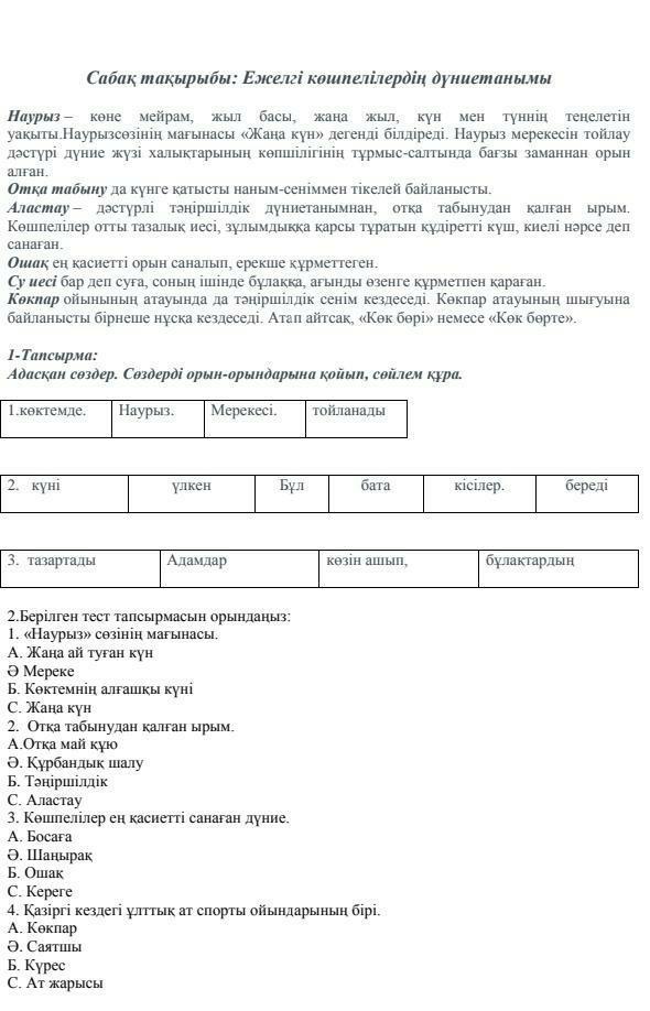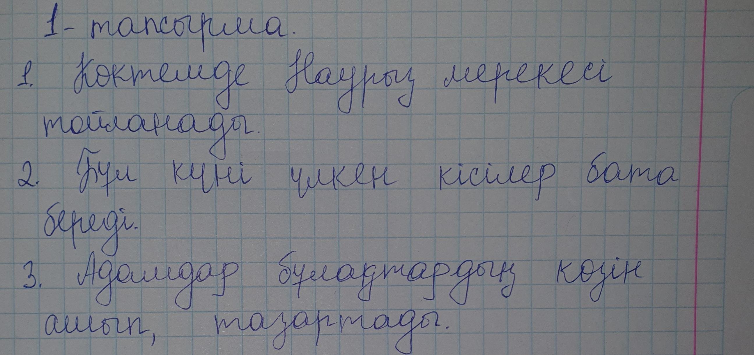 1. Көктемде Наурыз мерекесі тойланады. Или? 1. Наурыз мерекесі көктемде тойланады.