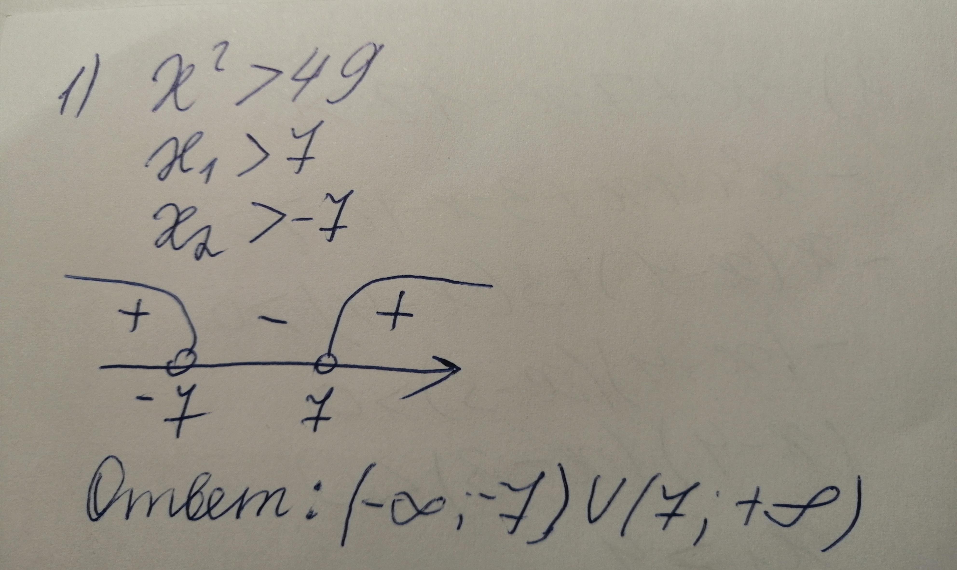Отсюда видно, что решением функции является промежуток х€(7; +бесконечность (у меня значка нет))