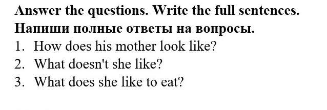 Answer the questions. Write the full sentences. Напиши полные ответы на вопросы.