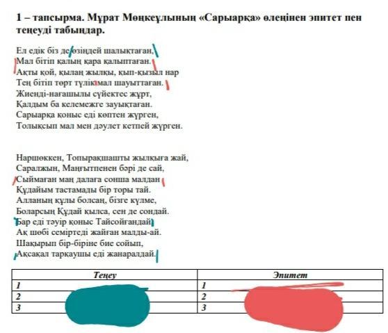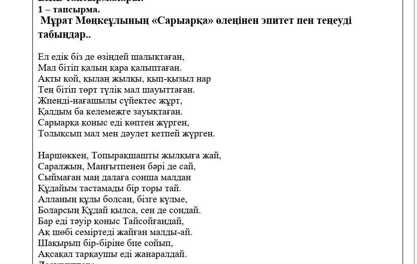 Мұрат Мөңкеұлының "Сарыарқа" өлеңінен эпиттет пен теңеуді табыңдар.