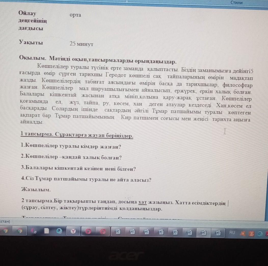 1 тапсырма. Сұрақтарға жауап беріңіздер.