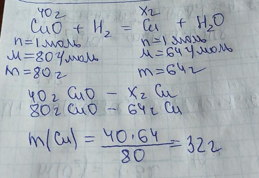 3. Какая масса меди образуется из оксида меди – CuO массой 40г по уравнению CuO + H 2 = Cu + H 2 O