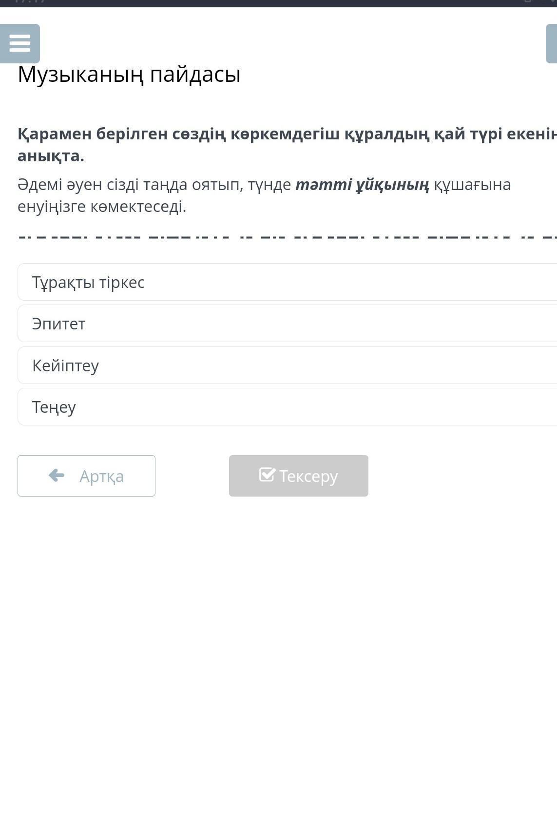 қарамен берілген сөздің көркемдегіш қай құралдың қай түрі екенін анықта Әдемі әуен ....