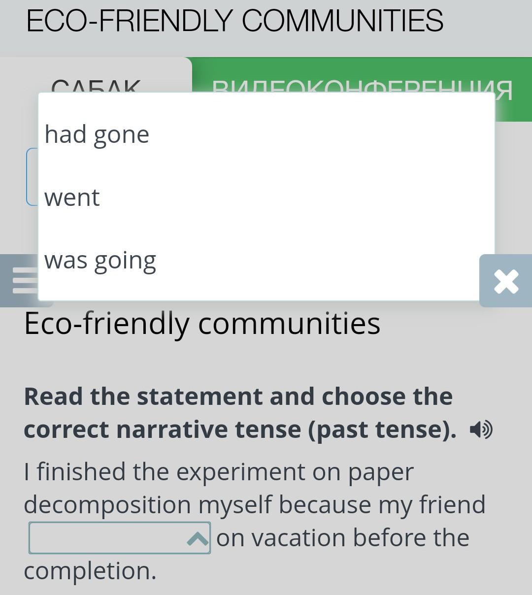 Read the statement and choose the correct narrative tense (past tense).
