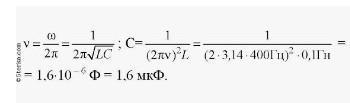 1/(2×3,14×400гц)^2×01гц=1.6×10^-6 ф=1.6мкФ