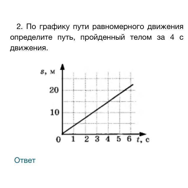 2. По графику пути равномерного движения определите путь, пройденный телом за 4 с движения.