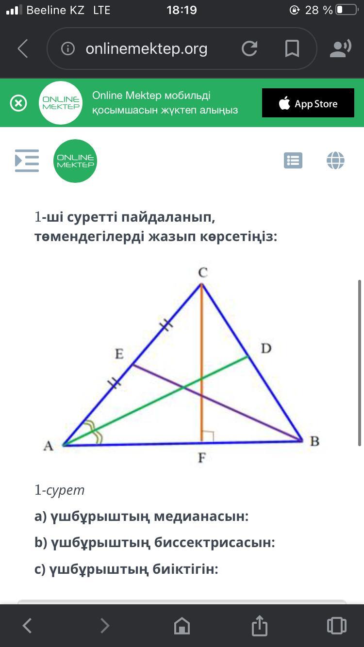 ТЕКСТ ЗАДАЧИ Используя рисунок 1, напишите следующее: Рисунок 1 - это медиана треугольника.